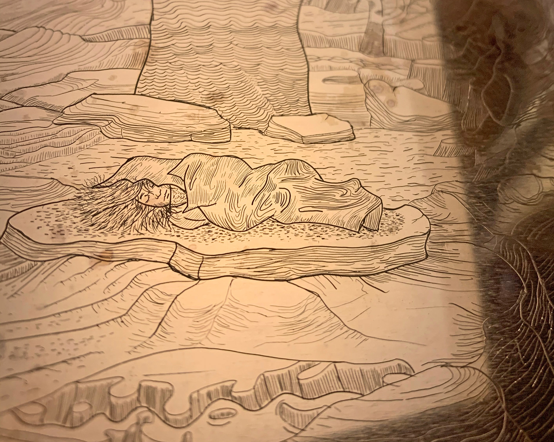 Gravure sur cuivre / 15 x 10 cm / détail de la plaque gravée